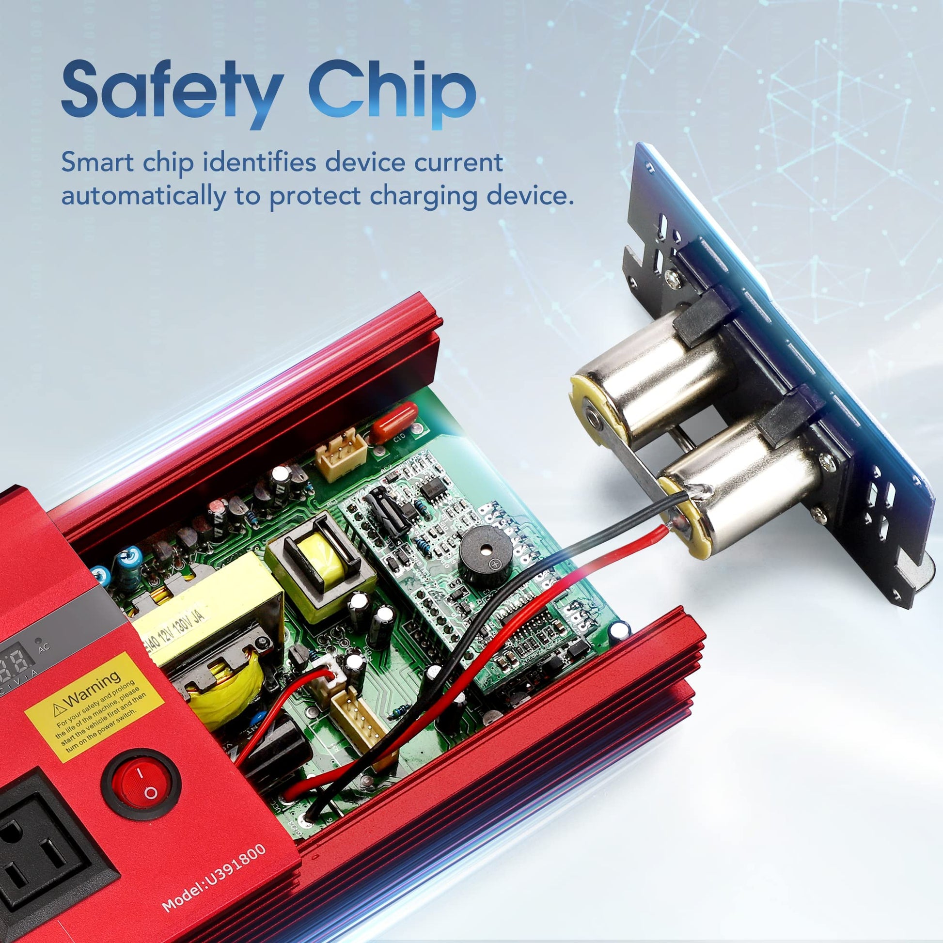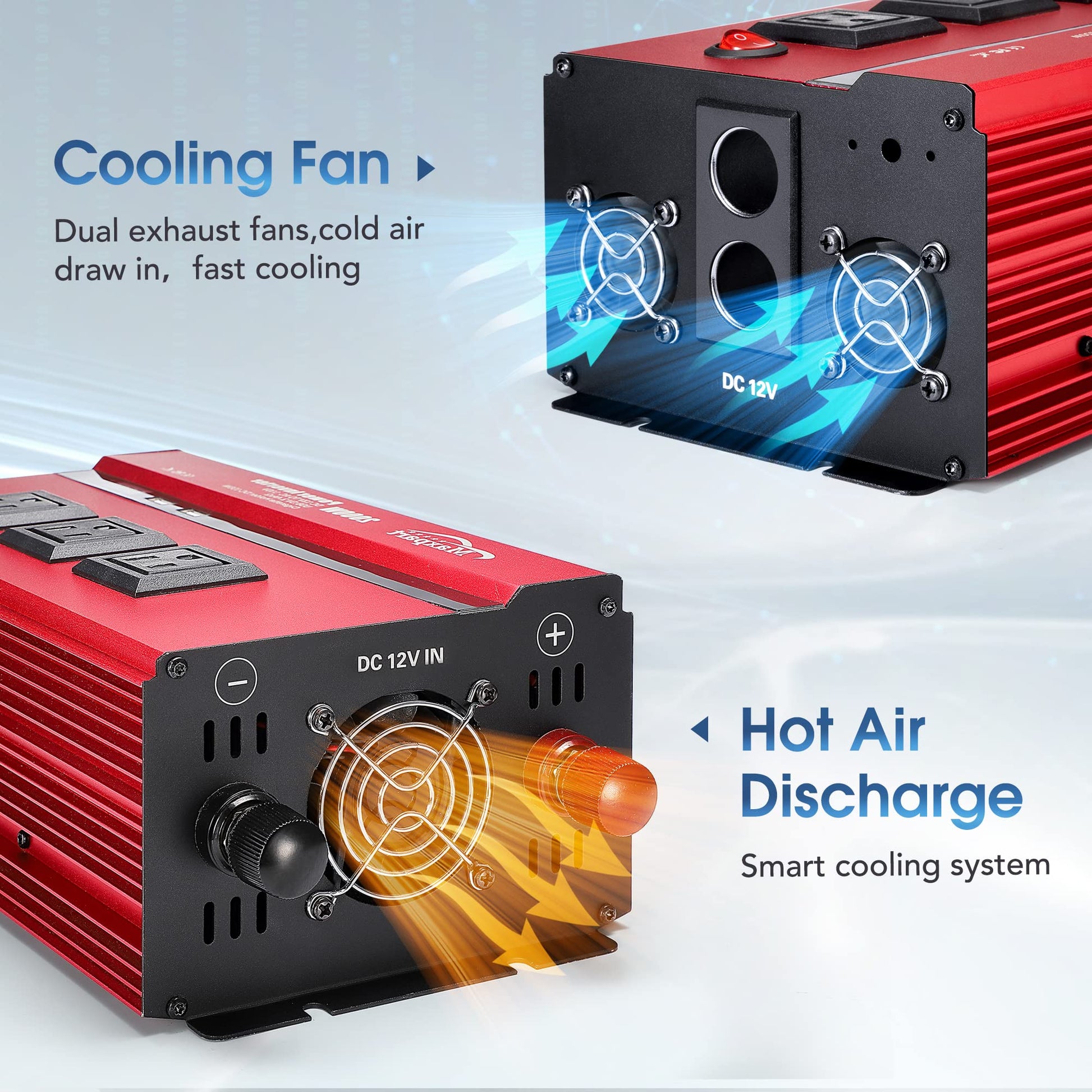 - Safety Multi-Protection 1000W 12V Automobile Inverter :Cooling Fan,Smart Digital Display, and Mini Slip Fuse to protect against Over Voltage, Low Voltage,Overload ,Short Circuit, Over Heat. Applies the technology of ABS crashworthiness, robust, as well as good electrical insulation auto inverter