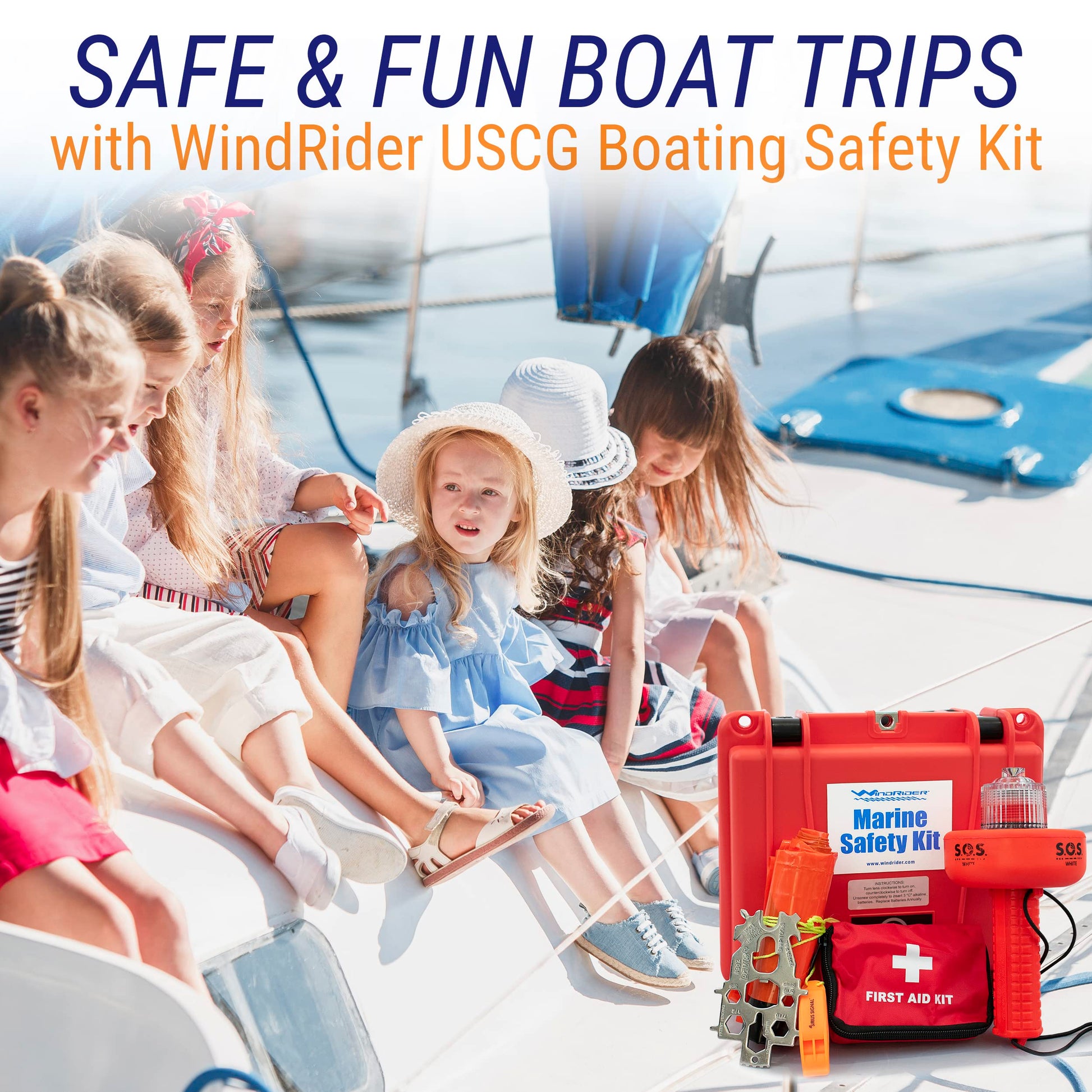 - Be Prepared for minor Injuries - When boating, you never know when you will get a cut or scrape or a hook in your finger. This boat safety kit includes a small first aid kit for those minor injuries on the water. With antiseptic wipes and bandaids and gauze etc, this is perfect for boating with kids, where even a minor cut can be a "big deal" if you don't have a band aid handy.
