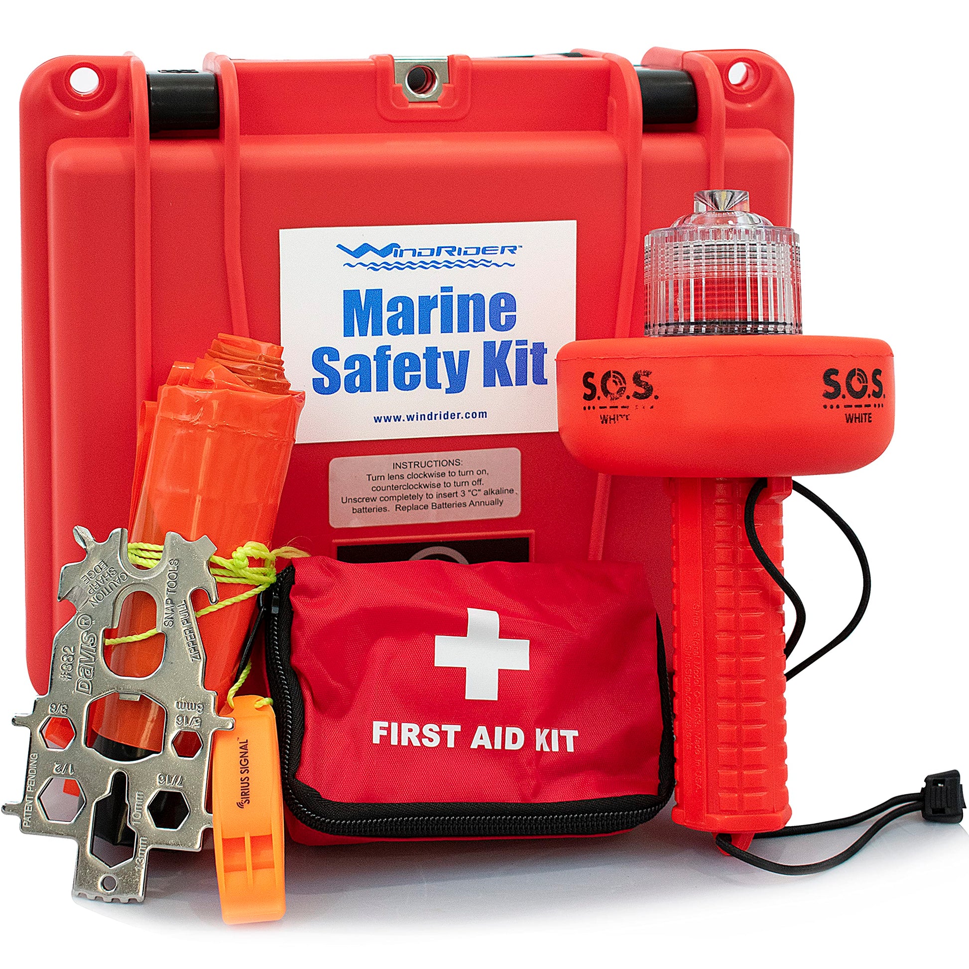 USCG Approved Boat Safety Kit - Electronic Flare - First Aid Kit - Whistle - Multi Tool - Waterproof Case Coast Guard Boating Marine Flares Emergency Distress Signals