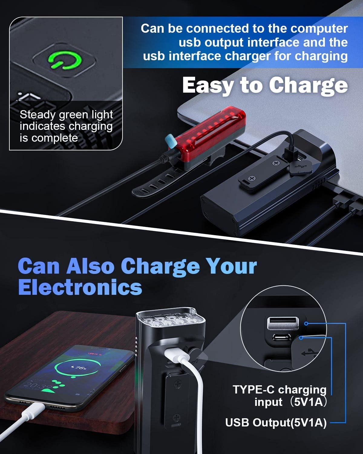 Victoper Bike Light, High Lumens Super Bright Bicycle Lite, 6+4 Modes USB Rechargeable Bike Headlight & Taillight Set, Waterproof Safety Bike Front & Rearlight for Road, Mountain, Night Riding