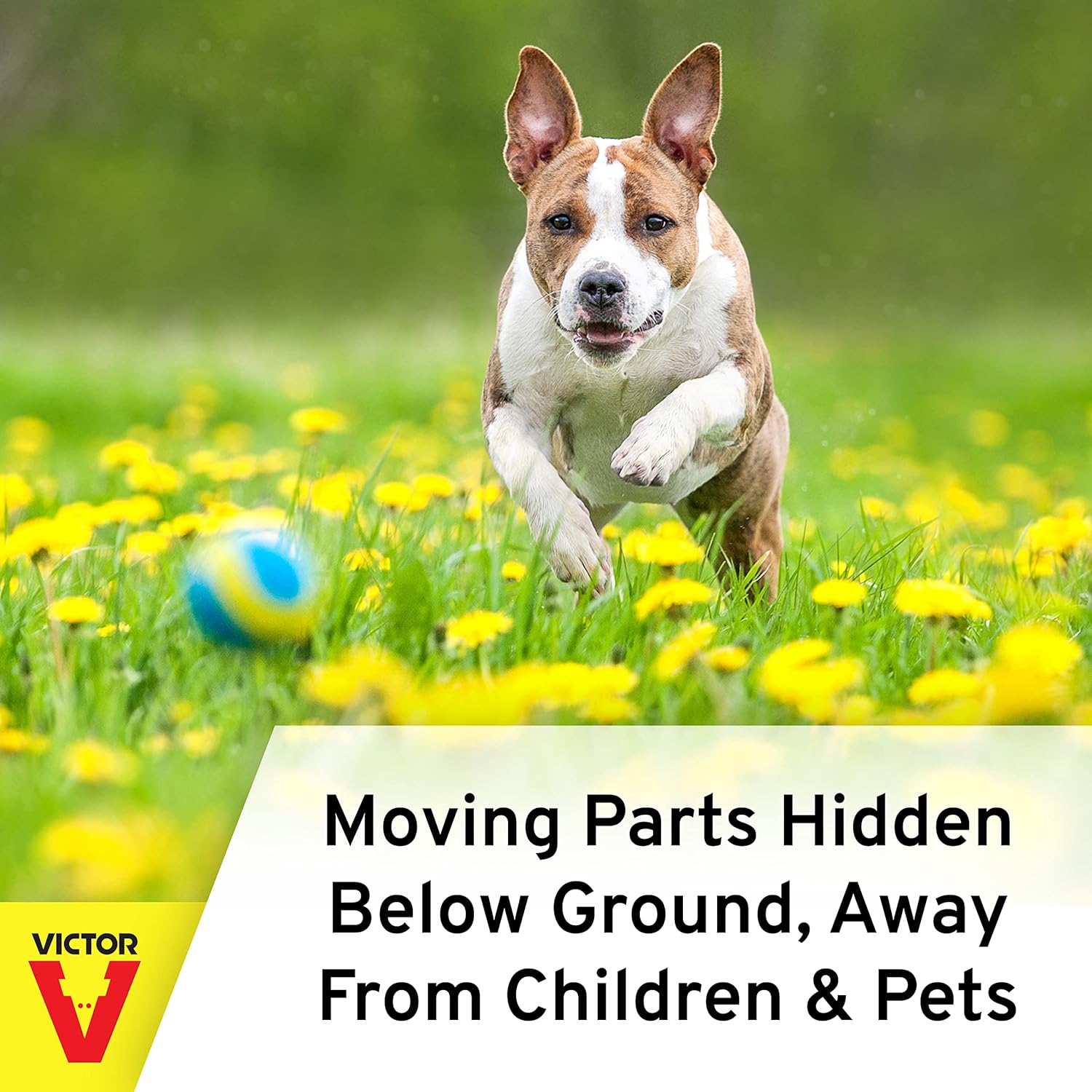 - Moving parts are below ground away from children and pets
