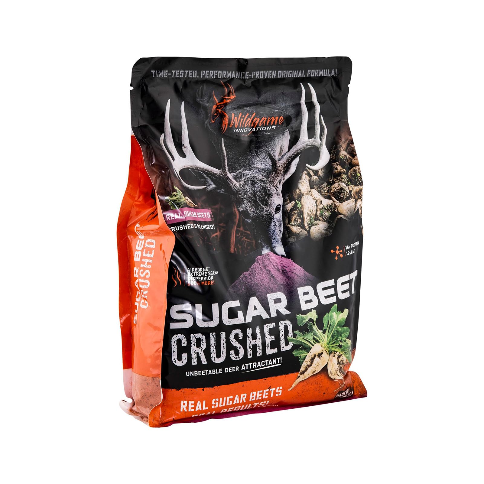 WILDGAME INNOVATIONS SUGAR BEET CRUSHED DEER ATTRACTANT: Sugar beets are incredibly effective at attracting deer. The problem is they grow seasonally and only in certain regions, making them hard or even impossible for hunters to find. Wildgame Innovations made the impossible possible with an ultra-concentrated deer feed using real sugar beets. Say hello to the Sugar Beet Crushed feed attractant family. This supplemental food is chock-full of fat, protein, and vital nutrients to grow strong and healthy deer. And to make sure as many bucks get to it as possible, Airborne Technology sends 600% more scent molecules than ordinary feed grains. MAIN FEATURES: - Real sugar beets crushed and blended into an ultra-concentrated attractant; - Captures one of deer's favorite treats that can be difficult to find; - Airborne Technology creates long-range scent vapor trail; ABOUT WILDGAME INNOVATIONS: Wildgame Innovations makes products, including trail cameras, attractants, feeders, and hunting accessories for new-age hunters. We are go-getters who make results happen, no matter the odds. We strive for improvement because we want a better hunt, just as much as you do. And that passion continues to deliver better products and greater success afield, just as it has since 2002.