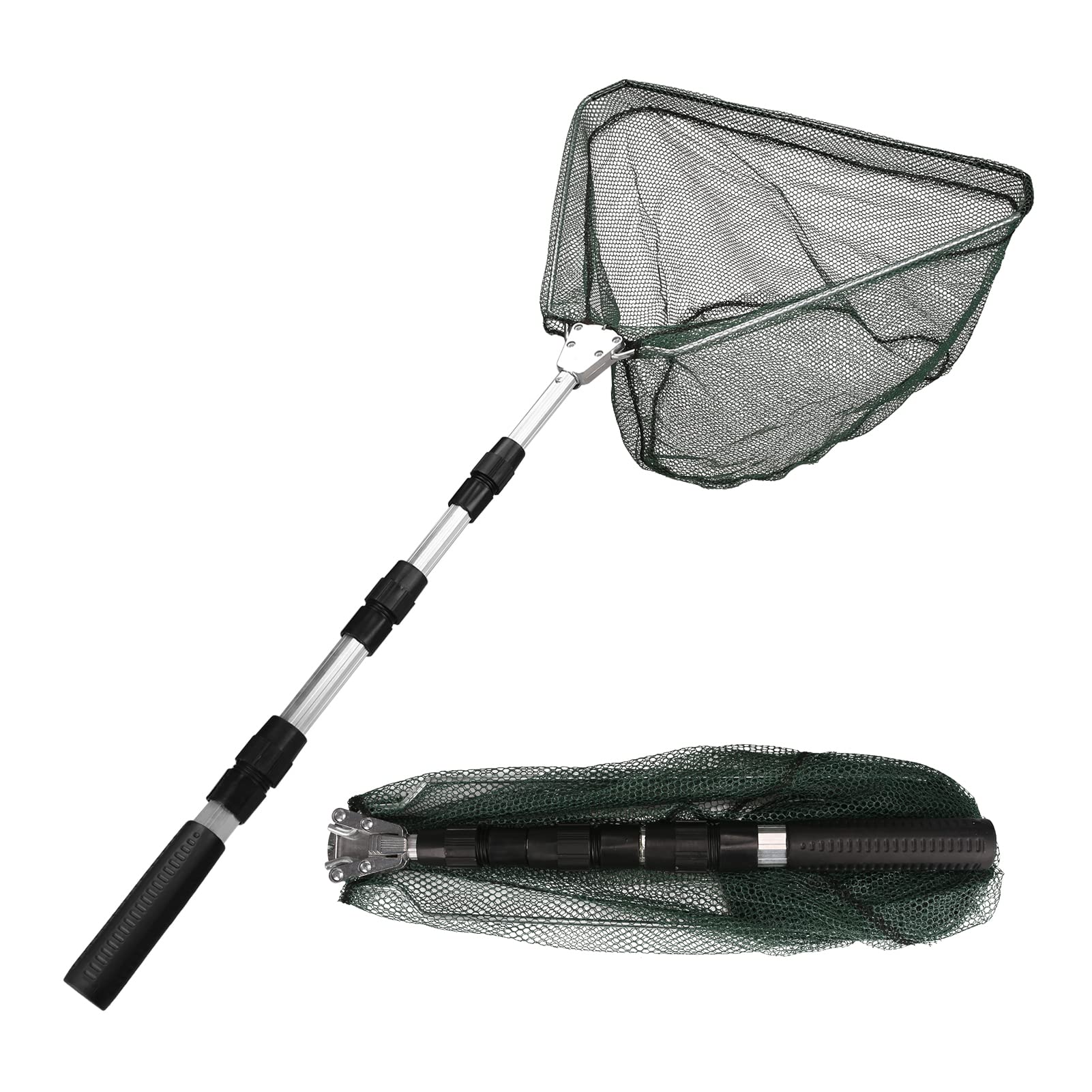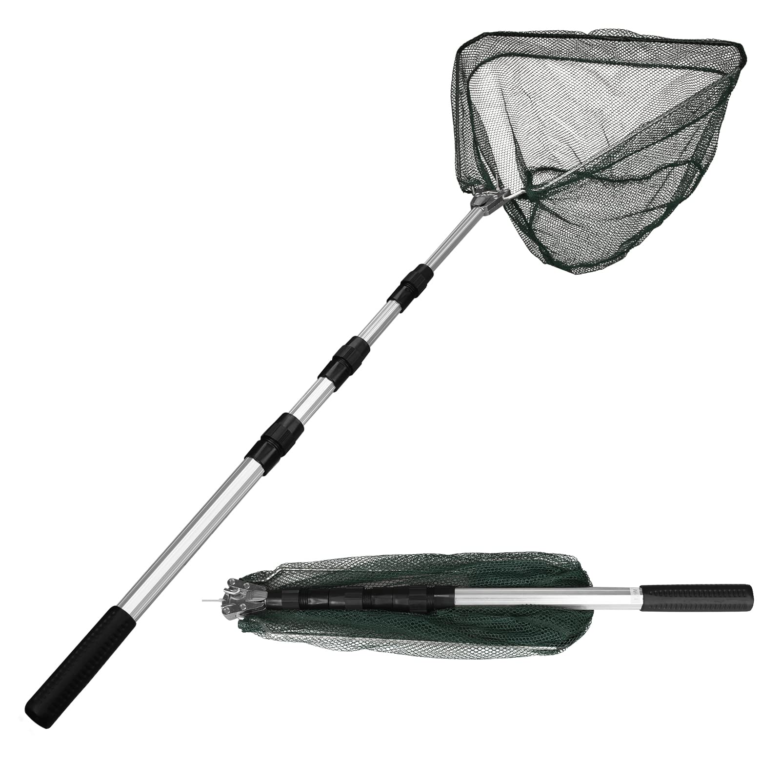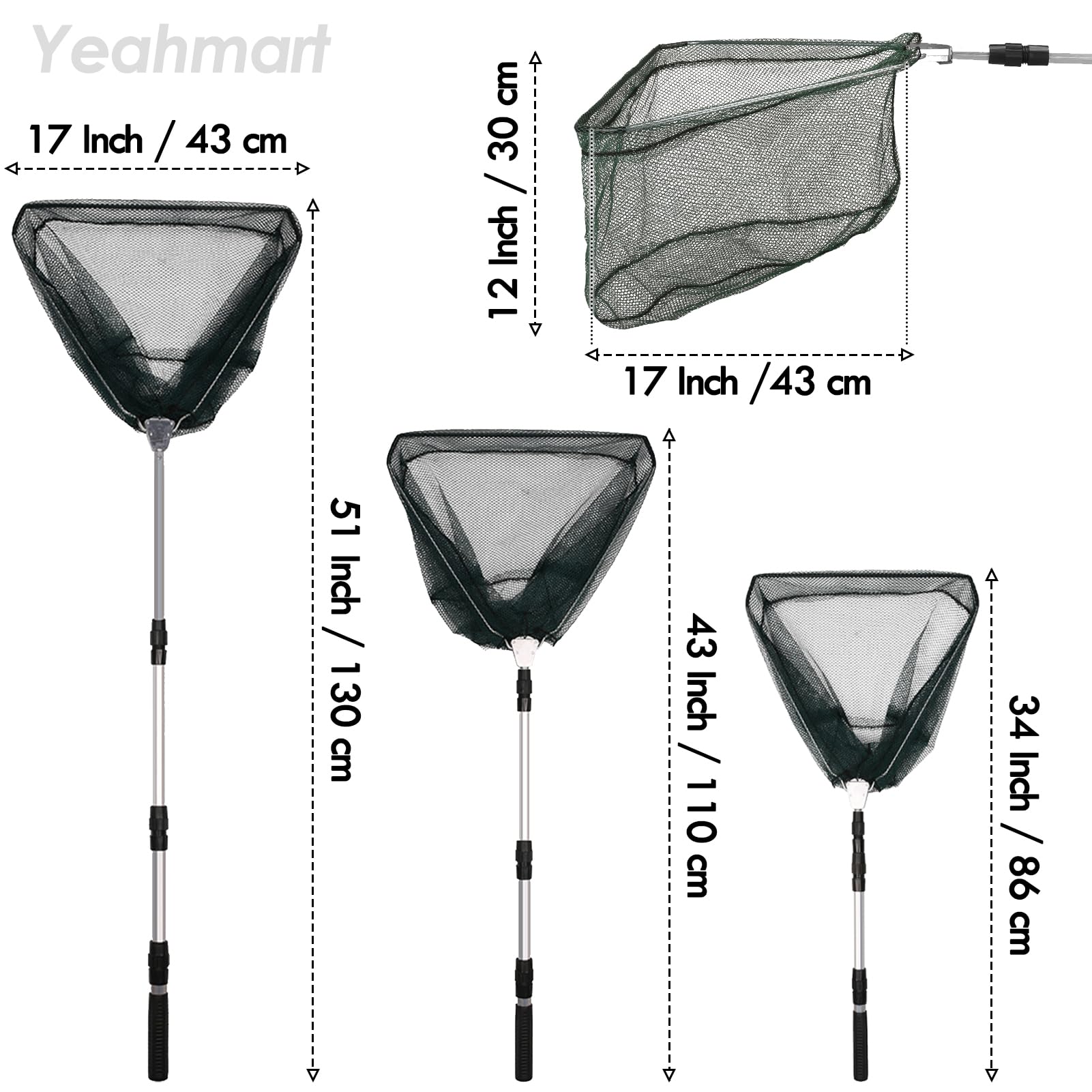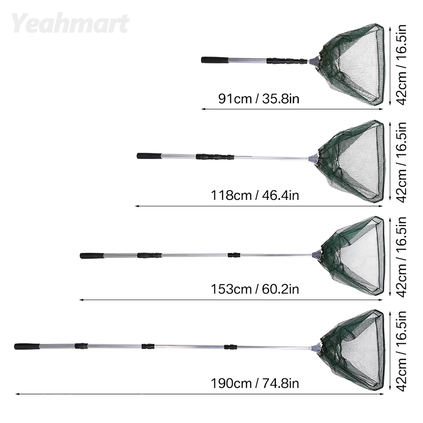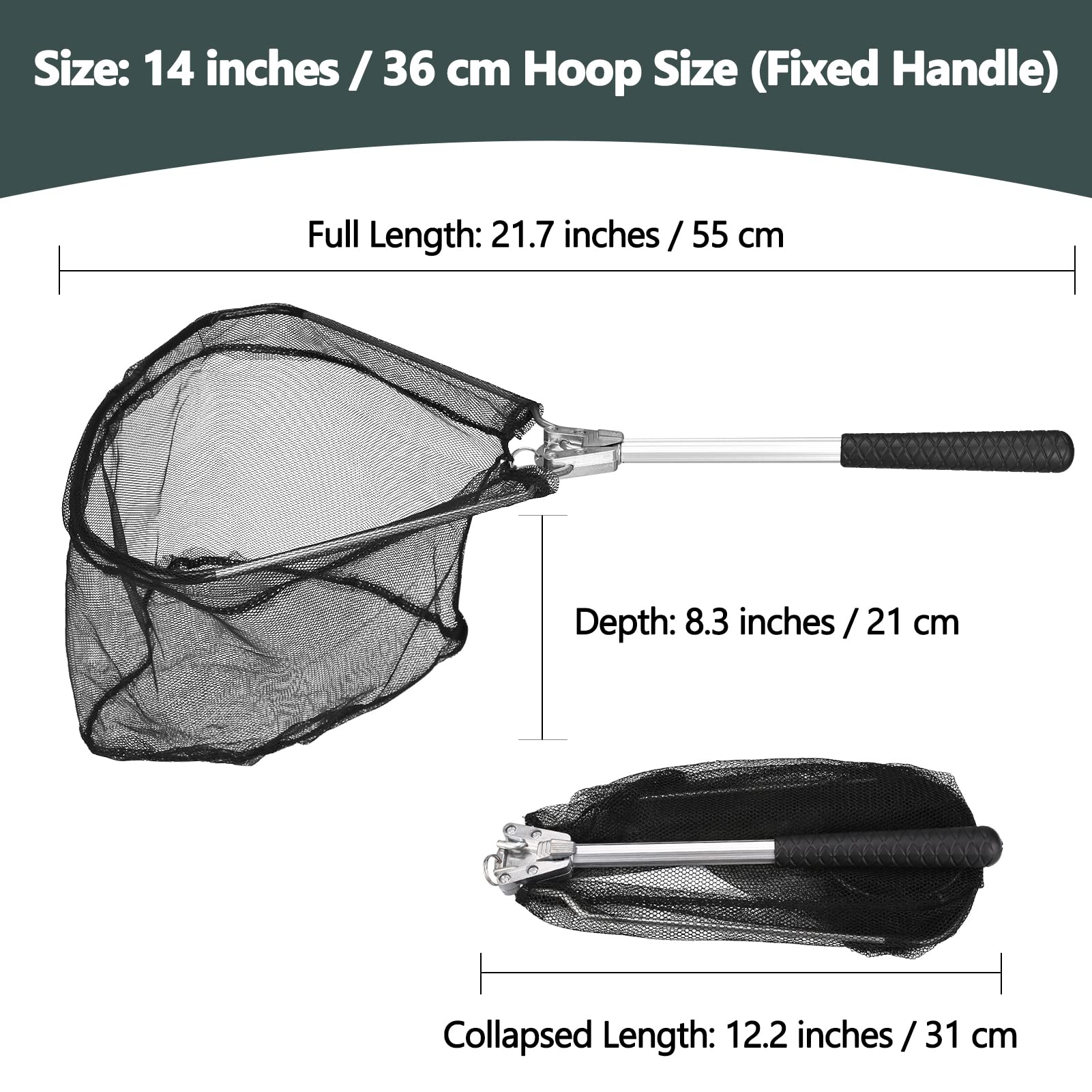 - Telescopic Design: The fishing net has a foldable design, retractable pole, and lightweight framework, making it easy to carry and store. The skid-resistant handle provides a secure grip, ensuring safe and stable fishing. The net's extended length is 21.7 inches, folded length is 12.2 inches, the hoop size is 14.2 inches, and the net depth is 8.3 inches.