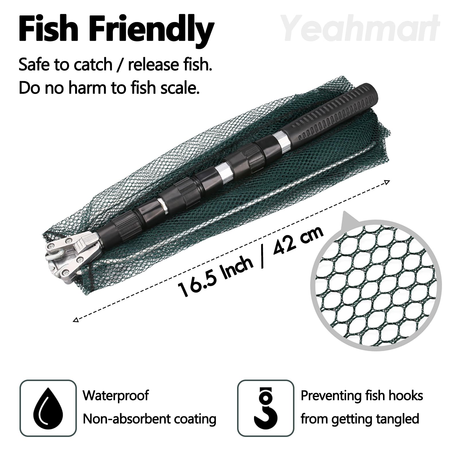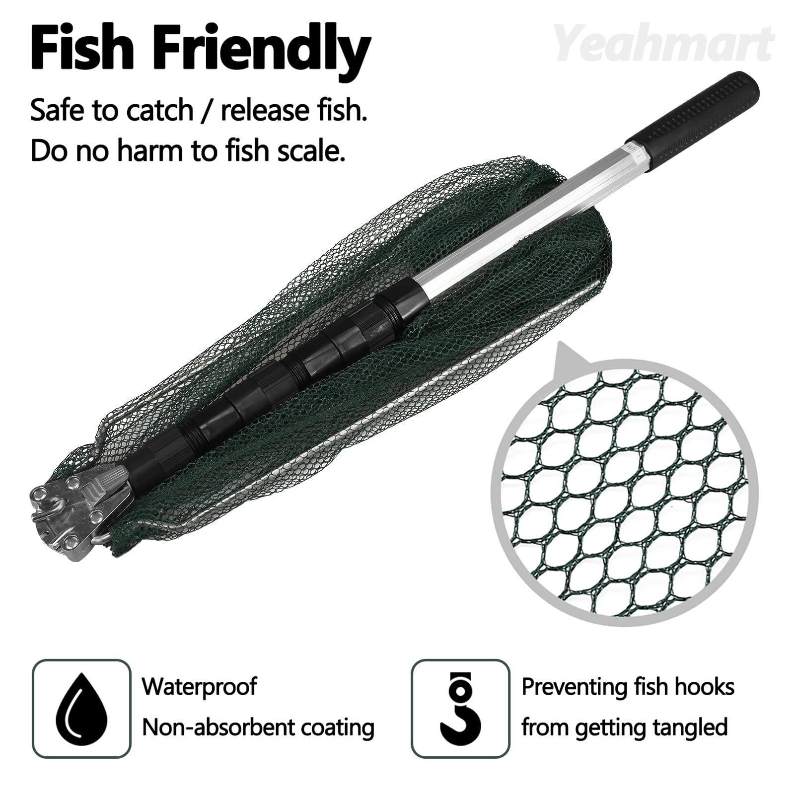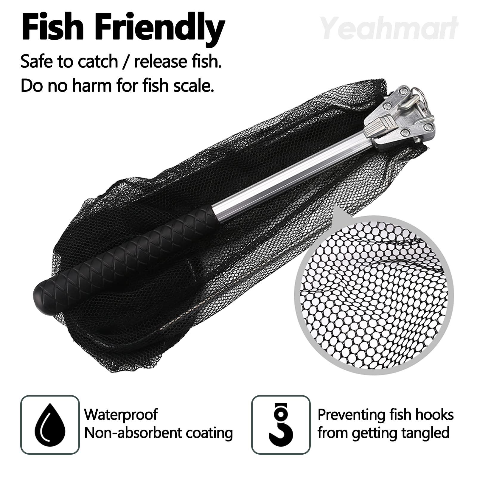 - Rubber Coated Mesh: The net's waterproof and non-absorbent rubber material is knotless, which prevents fish hooks from getting tangled. The lightweight mesh is durable and won't damage the fish's scale. This makes it perfect for fishing beginners and professionals alike, as it's easy to handle and doesn't harm the fish.