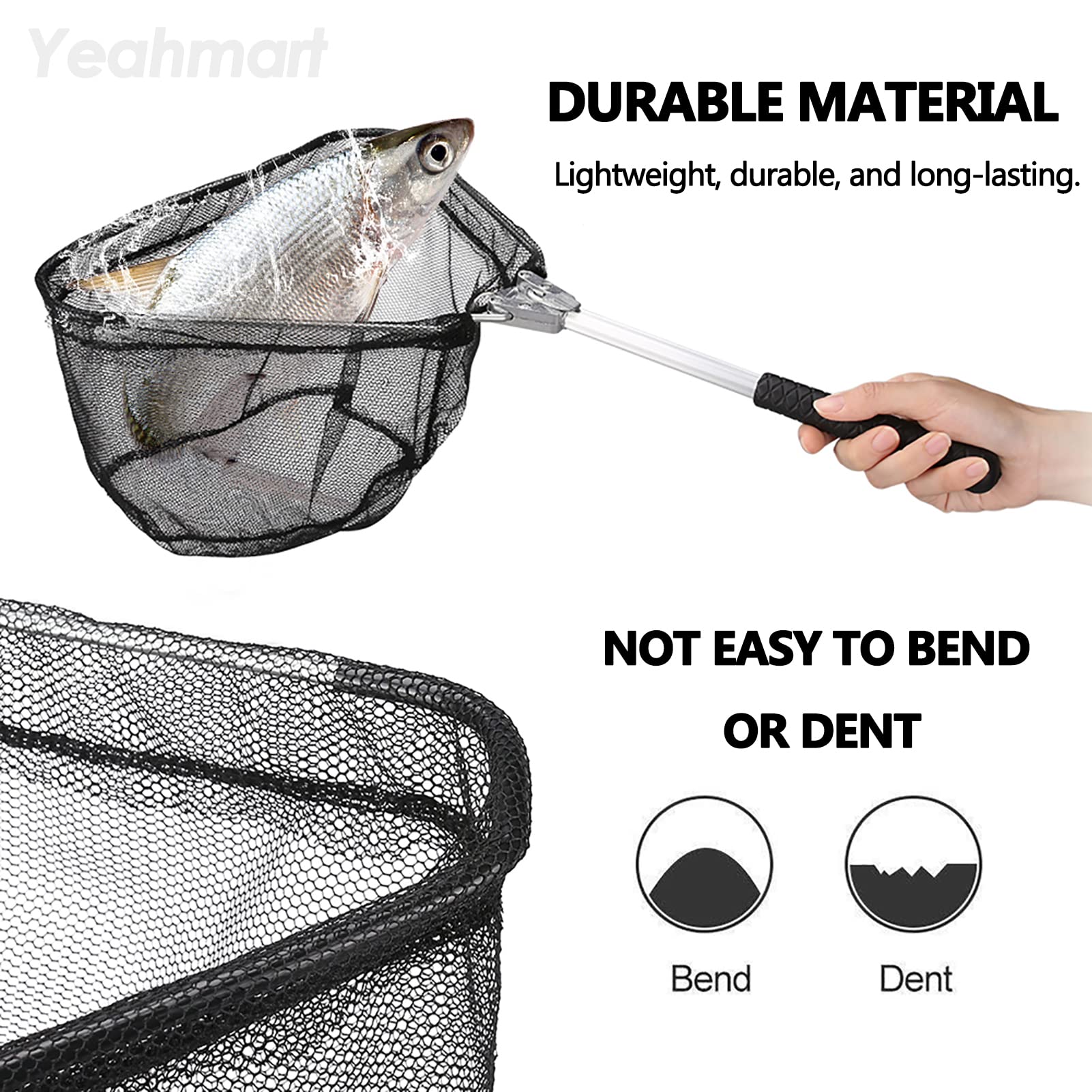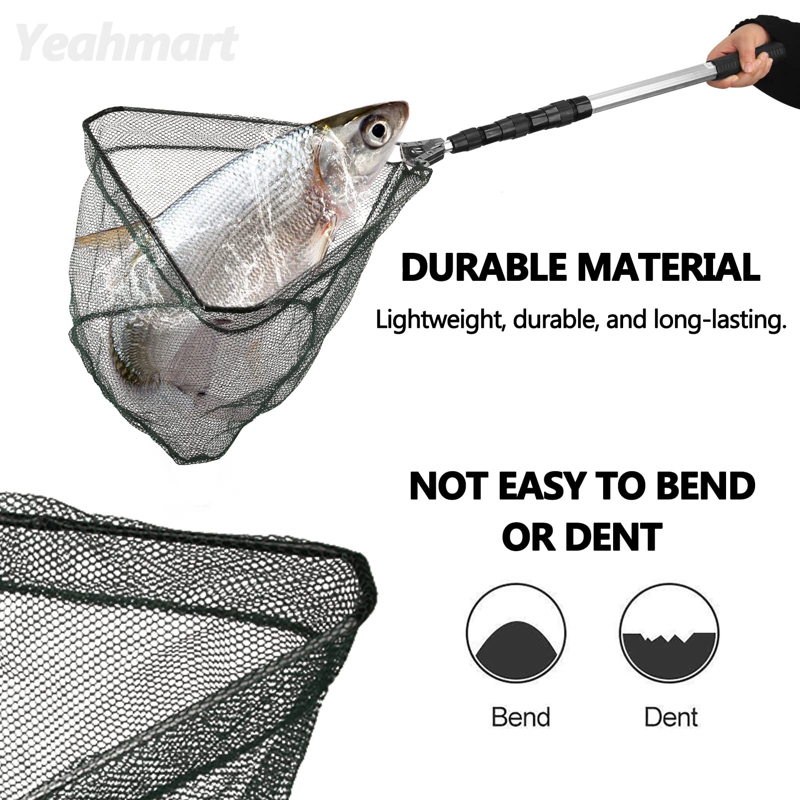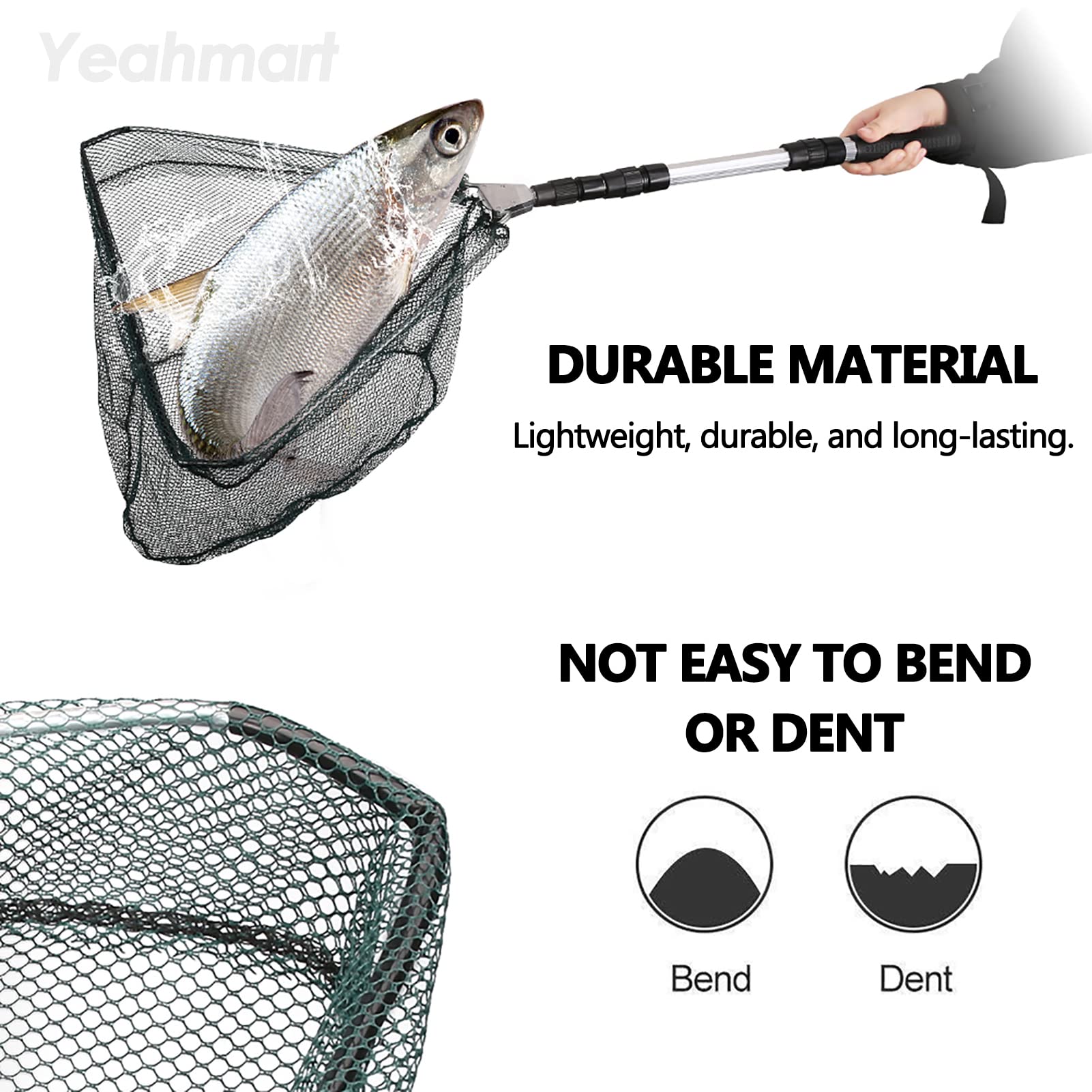 - Rubber Coated Mesh: The net's waterproof and non-absorbent rubber material is knotless, which prevents fish hooks from getting tangled. The lightweight mesh is durable and won't damage the fish's scale. This makes it perfect for fishing beginners and professionals alike, as it's easy to handle and doesn't harm the fish.