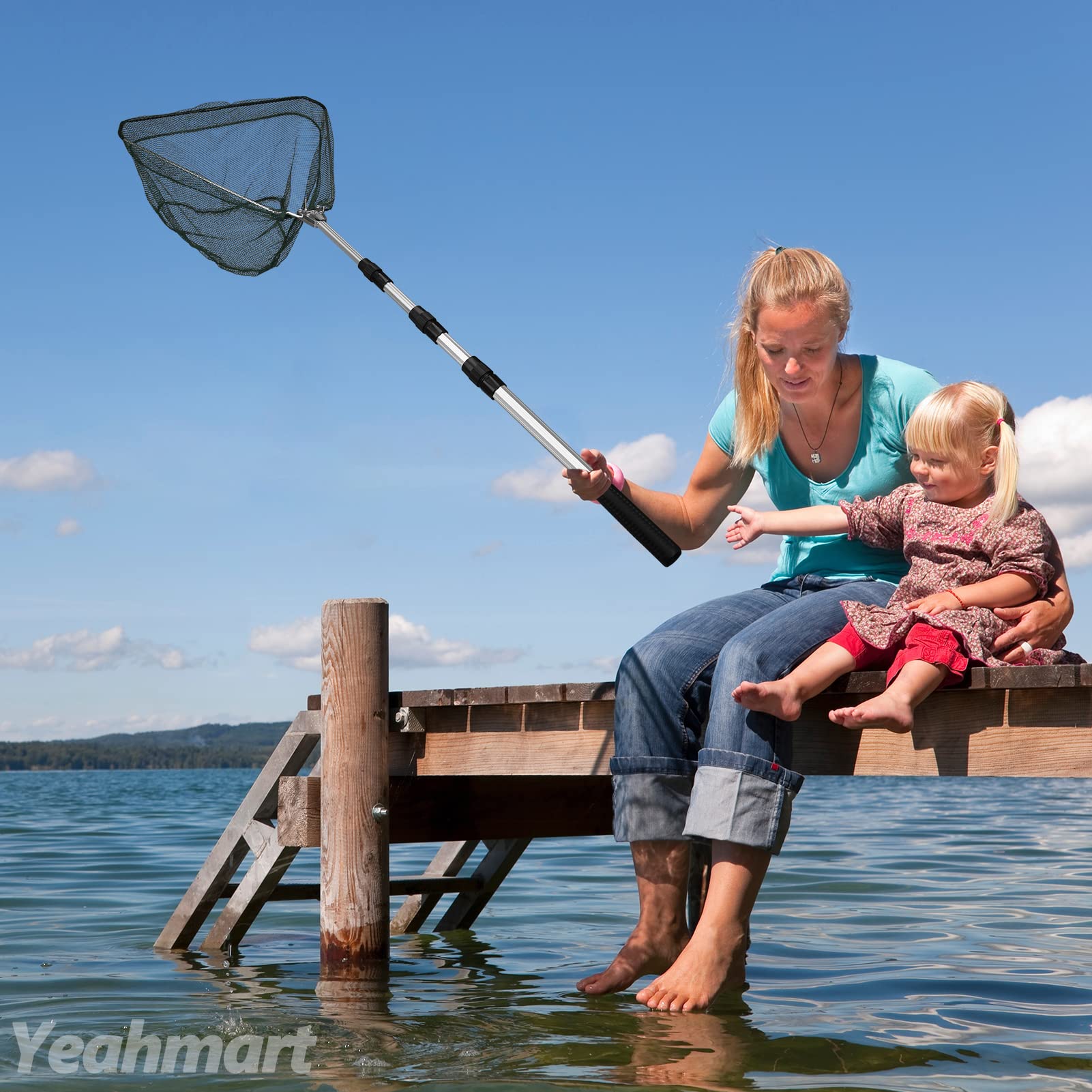 Yeahmart Fishing Net Minnow Nets with Aluminum Collapsible Telescopic Fishing Pole Handle and Nylon Mesh, Small Fishing Landing Net for Saltwater Freshwater, Kids, Men, Women, Extends to 21-75 inch