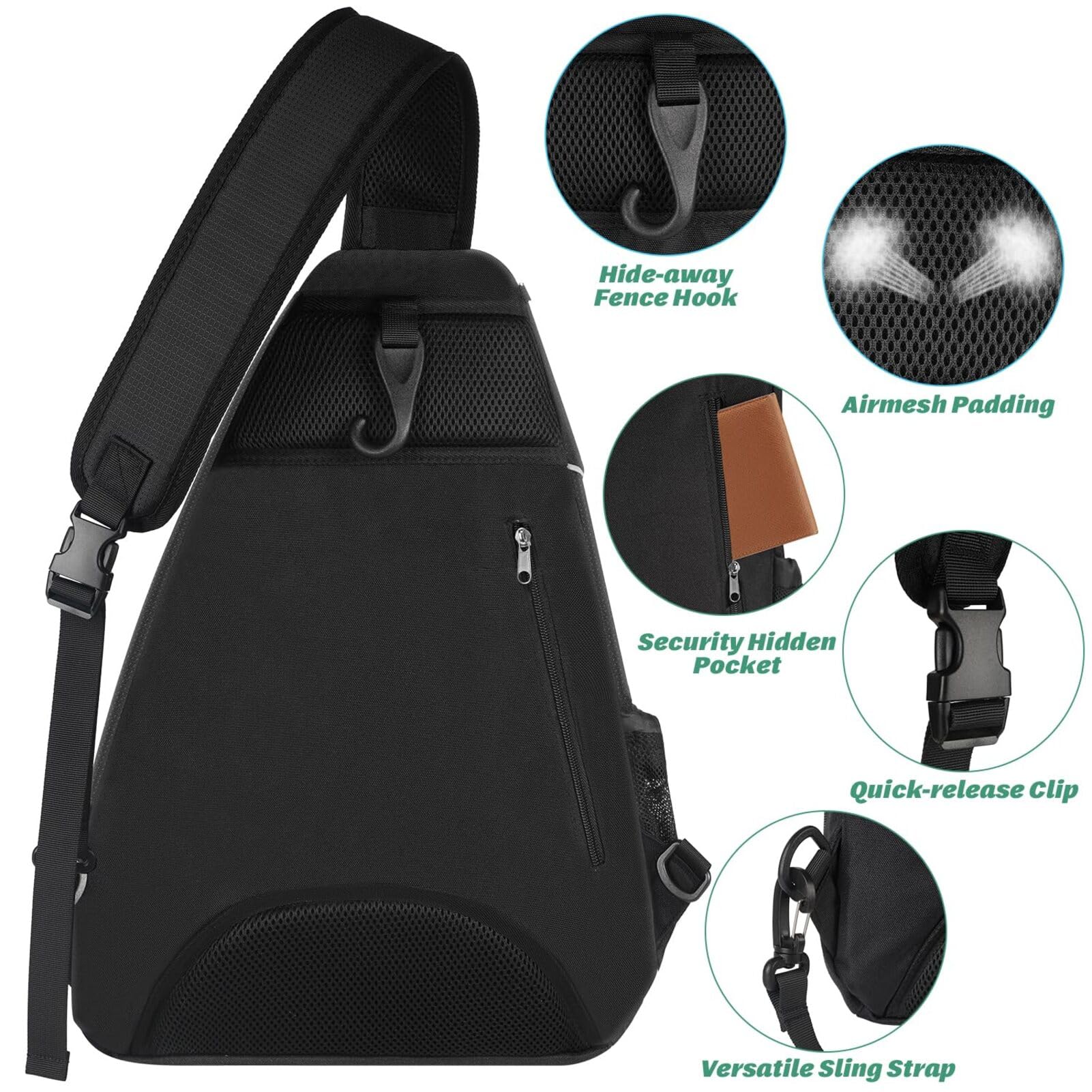 Ytonet Tennis Bag, Tennis Sling Backpack Crossbody Water Resistant for Men Women, Compatible for Pickleball Badminton Rackets