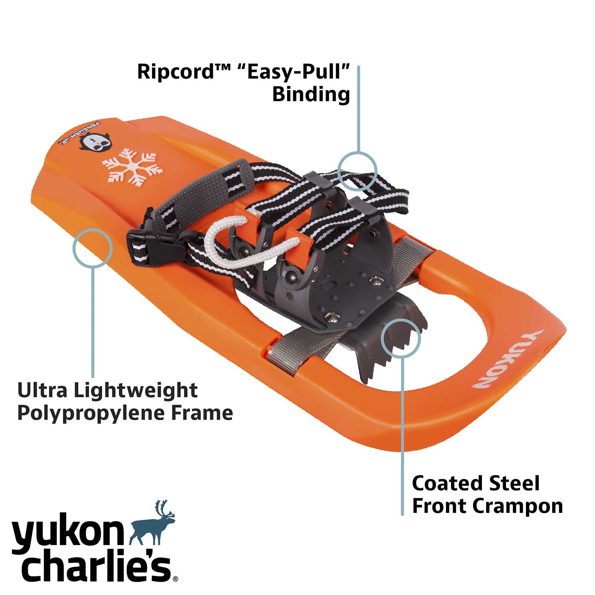 Details: Our classic Yukon Charlie's Penguin children's snowshoes are back with a rad orange sunglass-wearing penguin design. Made of ultra-lightweight polypropylene construction, adventurous kids will love their first snowshoeing experiences in this pair. Featuring the Energy Flex axle and our mitten-friendly Ripcord "Easy-Pull" binding, getting in and getting out is a breeze. Snowshoes for kids don't have to be basic. Instead, grab this safe, durable, and uniquely designed pair to help you children enjoy all months of winter!